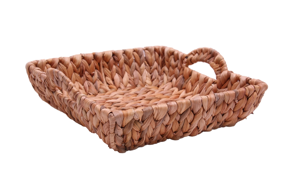 Diese quadratische Korbschale aus Wasserhyazinthe, ist um einen stabilen Drahtrahmen geflochten und so äußerst belastbar ohne die Form zu verlieren. Durch die seitlich eingeflochtenen Eingriffe lässt sich die Schale bequem tragen. Das Flechtmaterial ist unbehandelt und läßt die Korbschale in ihrer natürlichen Optik wirken. Ob als Obstkorb oder Brotkorb, die Korbschale ist vielfältig einsetzbar und ein echter Hingucker.