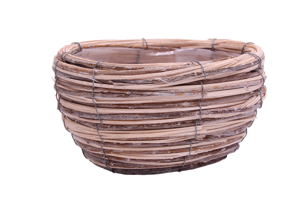 Eine moderne und schlicht Korbschale aus Span und Spaltweide. Der Pflanzkorb ist mit einem Drahtgeflecht verstärkt und mit wasserdichter Plasikfolie ausgelegt. So ist die Korbschale stabil und wasserfest genug um mit wunderschönen Pflanzen bestückt zu werden und so frische in ihr Zuhause zu bringen.